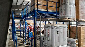 L’entreprise familiale FRIES, un des leaders dans la vente en gros de bois et de revêtements de sol en Allemagne, a véritablement donné une toute nouvelle dimension à la logistique dans sa centrale de Kiel : grâce au montage d’une plateforme, l’entreprise peut maintenant exploiter pleinement la hauteur au sol dans l’usine actuelle. On trouve désormais au deuxième niveau avec une hauteur de 3,8 mètres, une surface utile d’environ 270 mètres carrés, sur laquelle sont stockées des palettes volumineuses avec du matériau isolant en bloc. Et au-dessous de celui-ci, il y a de la place pour un nouvel espace de travail - la construction d’une usine supplémentaire n’est donc plus nécessaire.